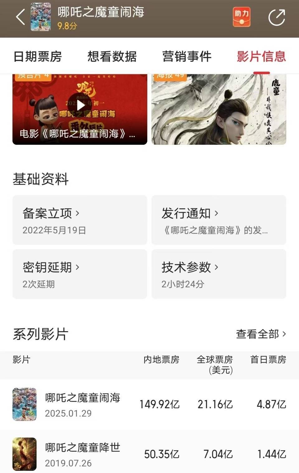 连年来,国产电影票房记录握住被刷新,尤其是动画电影和系列电影的领略尤为亮眼。其中,由饺子抓导的《哪吒之魔童闹海》(简称《哪吒2》)无疑是当前中国影史票房榜上的王人备王者。截止当前,该片的内地总票房已突破149亿东谈主民币,行将迈入150亿大关。这一得益不仅让《哪吒2》稳居中国影史票房冠军宝座,也让《哪吒》系列的内地累计总票房突破了200亿东谈主民币,成为中国首个票房破200亿的电影系列。饺子也因此成为中国首位票房破200亿的导演,号称中国电影史上的里程碑。