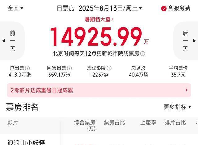 反噬风暴 8月13日,《浪浪山小妖魔》的票房收获还算亮眼,达到了4976万,排片率也处于一个较高的水平,不雅众们被电影里小妖魔们的冒险故事和温馨的家庭情节所招引。 谁能念念到仅一天之后,电影票房像坐了滑梯同样,骤降至4453万,单日跌幅跳跃10%。 让东谈主诧异的是那时电影的排片率正处于26.6%的峰值期,按常理来说,排片增多,票房也应该水长船高,可实际却是票房不增反降。