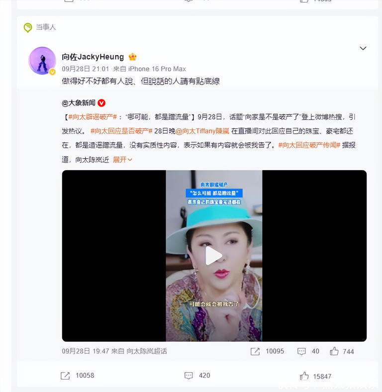 不久后,向佐也在外交平台转发了向太的直播视频,并配文直言:“但愿大众语言有底线,不要无端惊扰咱们。”这段回复显得既坚决又有劲量,仿佛在告诉公众:流言止于真相。