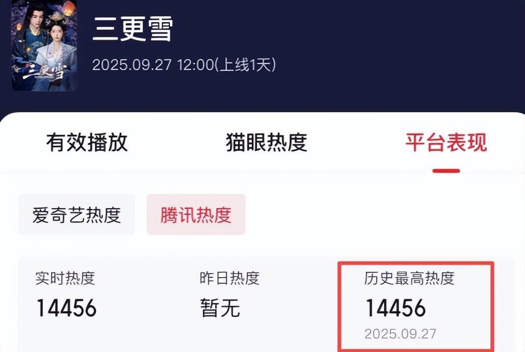 该剧上线鹅厂、桃厂、芒果TV,仅开播2小时,热度缓慢破14000,号称全网0差评。