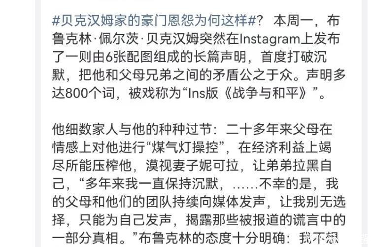 确切没念念到,小贝一家的争产大戏开yun体育网,尽然拉开了序幕了,只不外,此次不是女儿儿媳要争小贝的产,而是小贝一家尽然还念念分儿媳妮可拉的财产